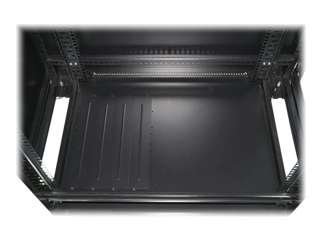 | Egenskaber | Låsbar frontdør, top- og bundkabelindgangspunkter, omvendelig frontdør, fødder med justerbar højde, kabelrouting-åbninger, 4 topblæserudskæringer, hærdet glasfrontdør, ventilationshuller, aftagelige sidepaneler, jordet ledning, nummererede skinnemarkeringer, robuste styrehjul |