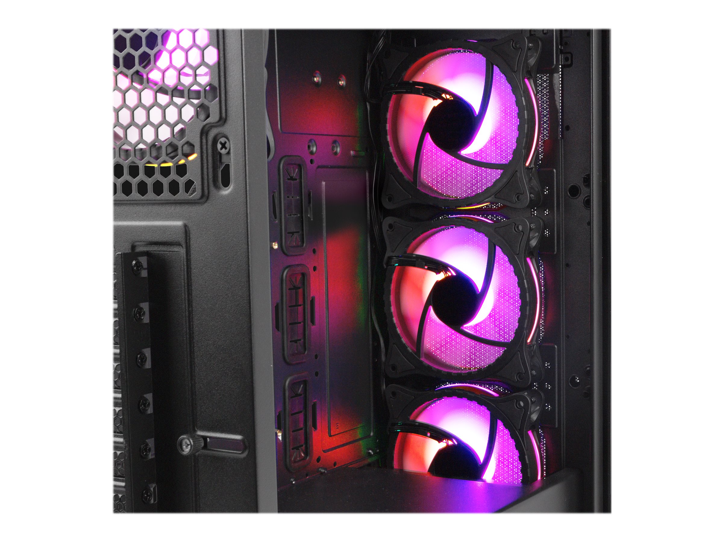 | Cooling System | Front: 120 mm fan x 3 / ARGB fan, 3 x 120, 2 x 140 mm fan supported | Rear: 120 mm fan x 1 / ARGB fan | Top: 120/140 mm fan mount x 2 |