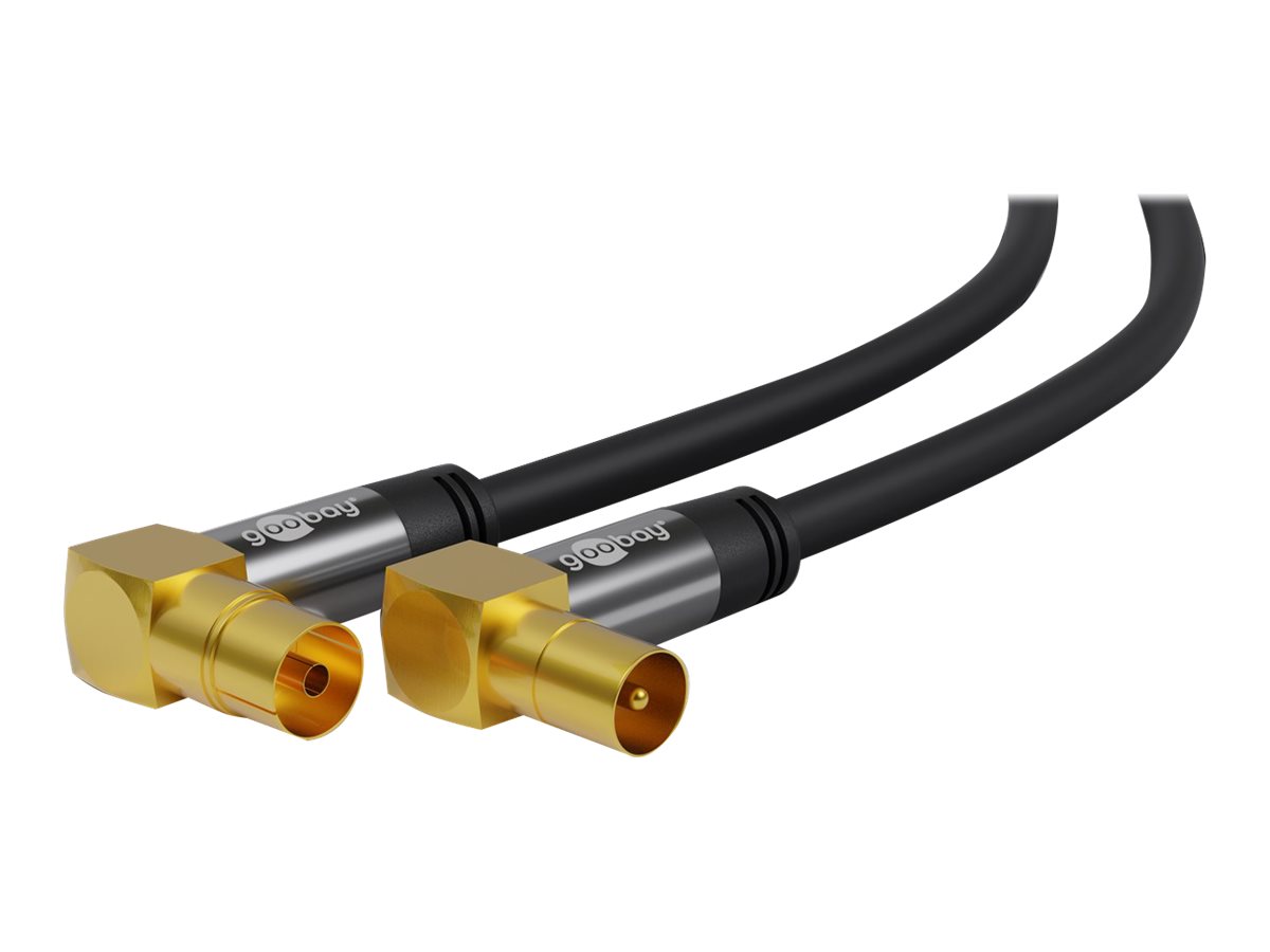 goobay - Antennekabel - IEC-forbindelse hun vinklet til IEC-forbindelse han vinklet - 5 m - firelagsskjold - 135 dB - sort - solid