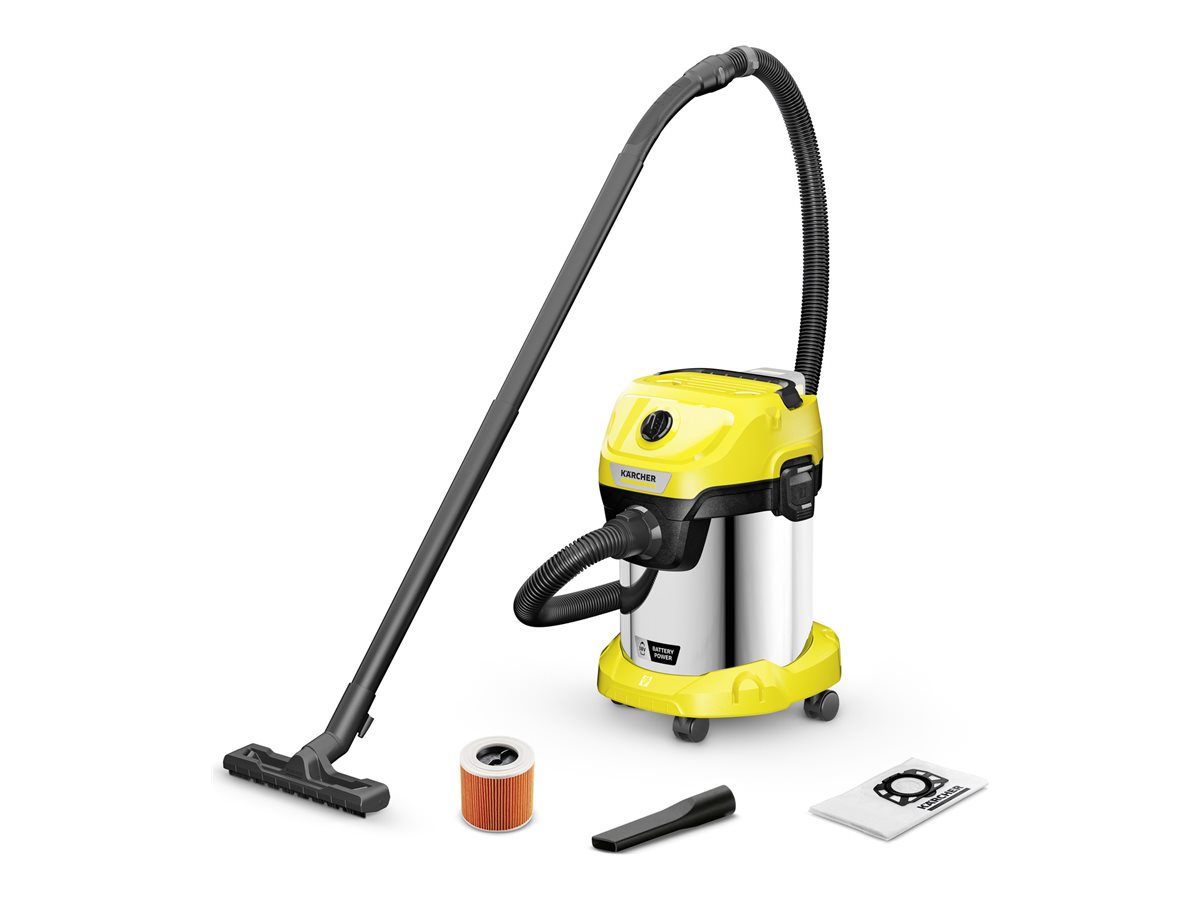 | Produktbeskrivelse | Kärcher WD 3-18 S - støvsuger - beholder - intet batteri - gul |