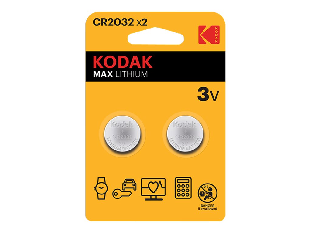 | Produktbeskrivelse | Kodak MAX batteri - 2 x CR2032 - Li/MnO2 |