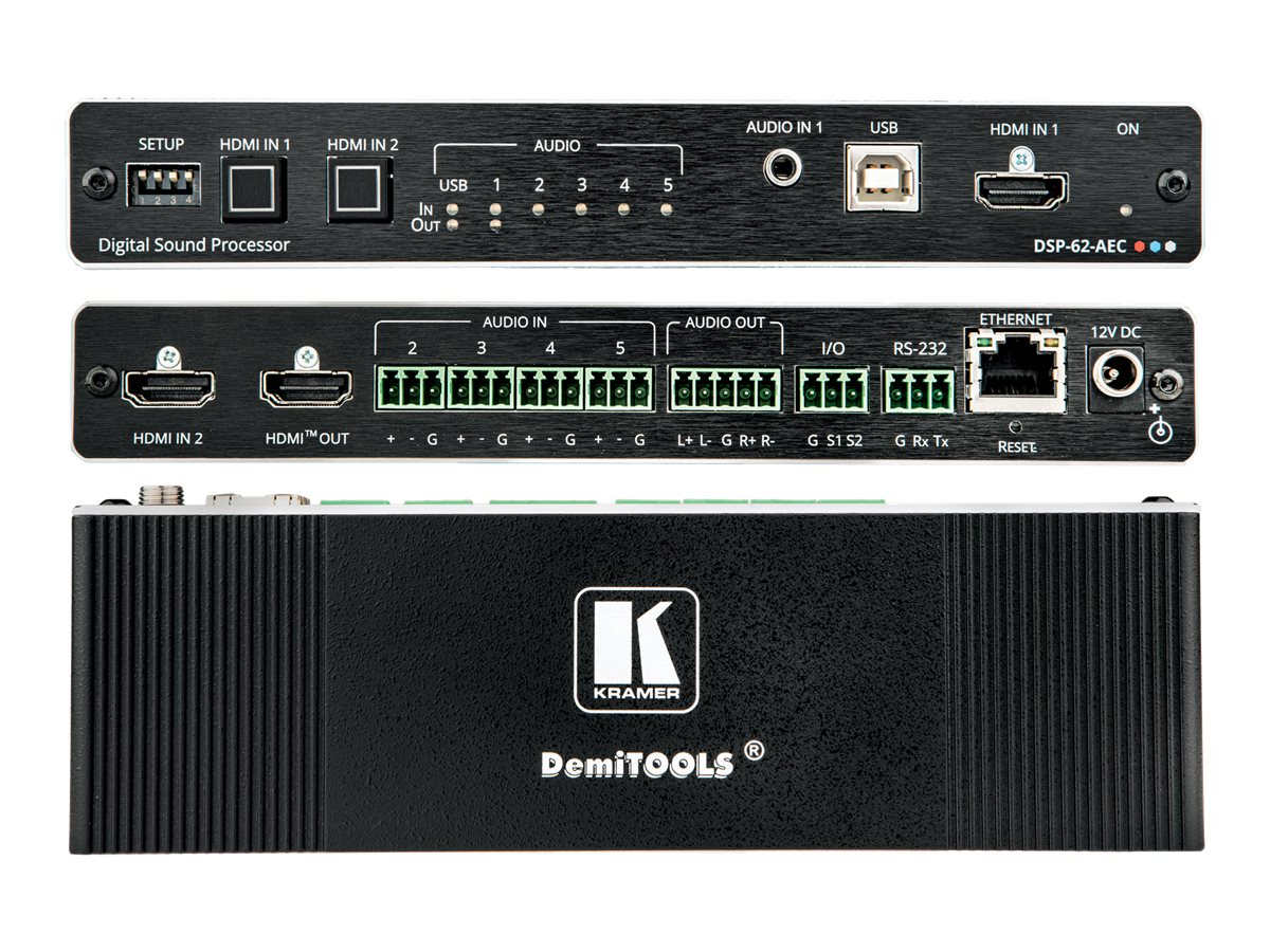 | Produktbeskrivelse | Kramer XSPerience DSP-62-AEC 6x2 matrixskifter/audio-afindlejrer |