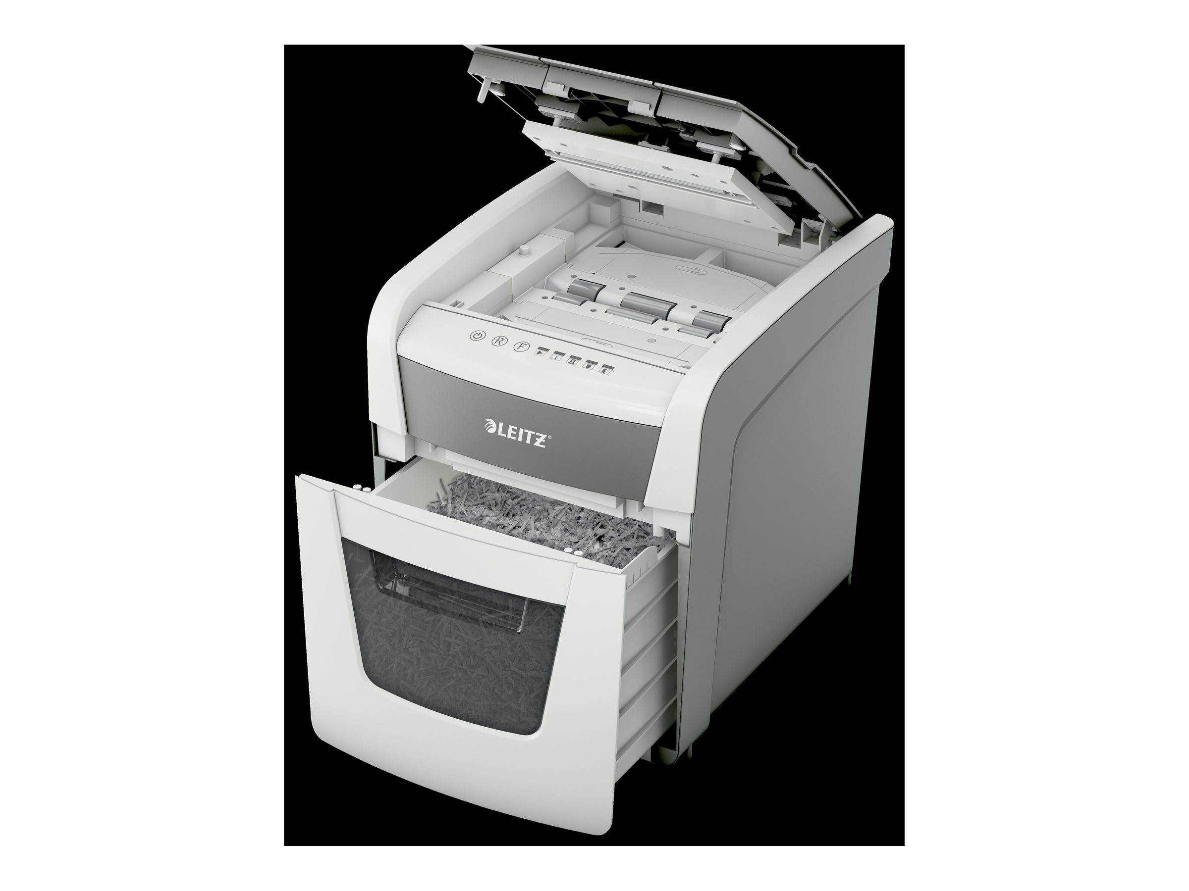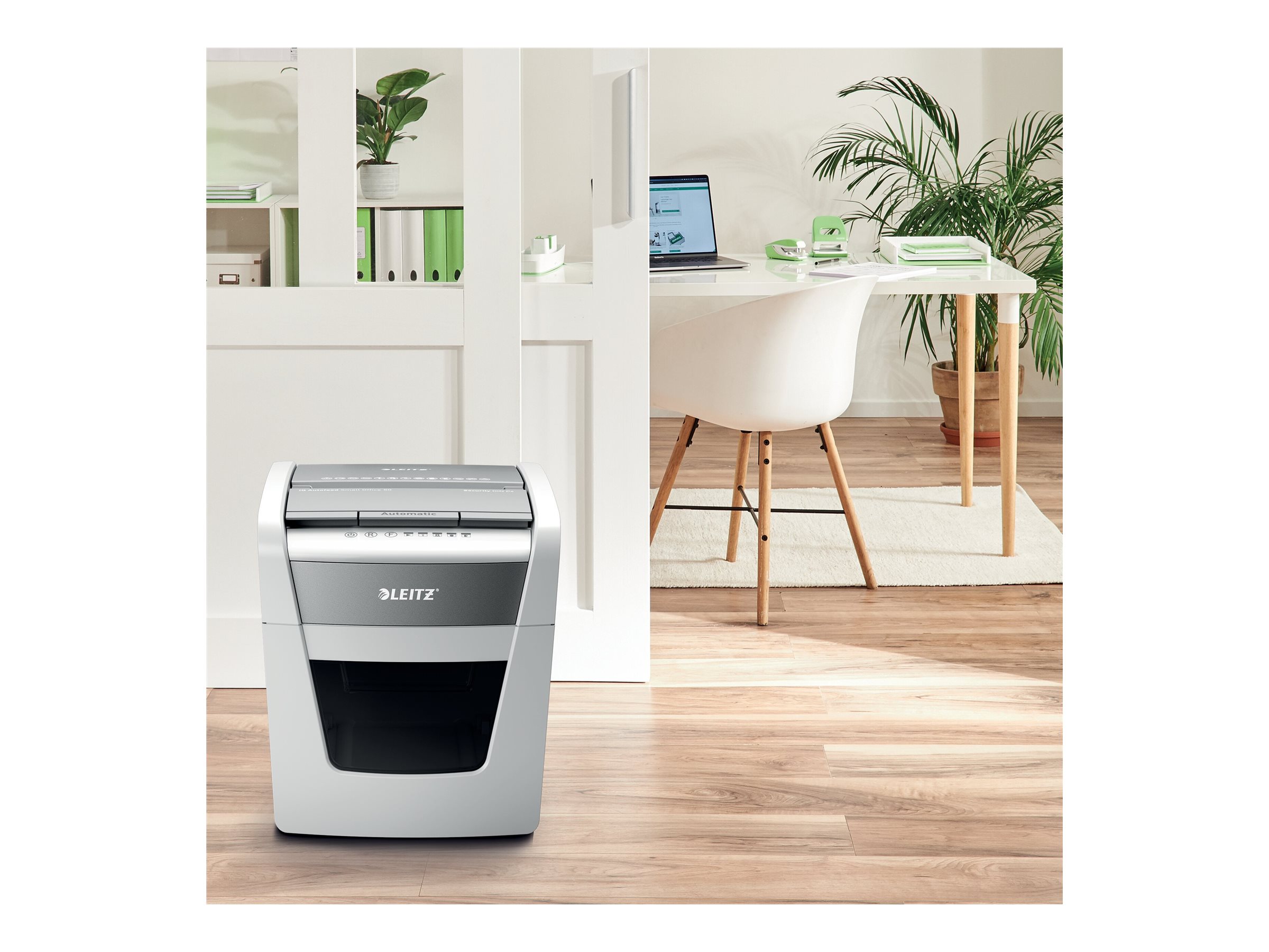 Fuldautomatisk makulator fra Leitz. Så intelligent, at den stille fungerer på egen hånd, bare indsæt din stak papirer (inkl. hæfteklammer og papirklips), luk låget og fortsæt med andet arbejde. Ideel til små kontorer eller hjemmekontorer. Fortrolig sikkerhed og fremragende ydeevne med denne antiblokerings, støjsvage og langtidsdrift (10 min.) makulator med automatisk indføring af papirer. Makulér automatisk 50 A4-ark til P4-sikkerhed (4 x 28 mm) på én gang i den kompakte 20 l beholder. Enkel betjening ved hjælp af touch-kontrolknapper.