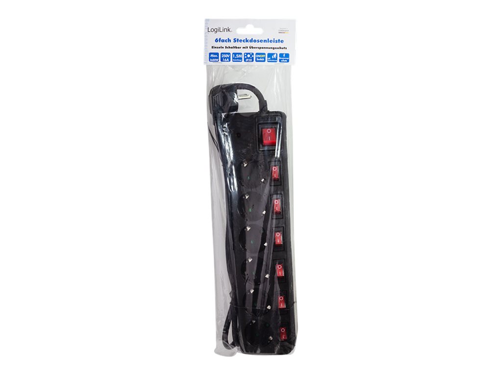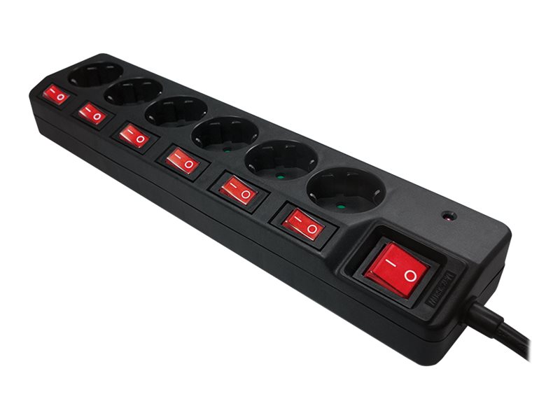 | Features | On/off switch, LED indicator, 6 switched outlets |