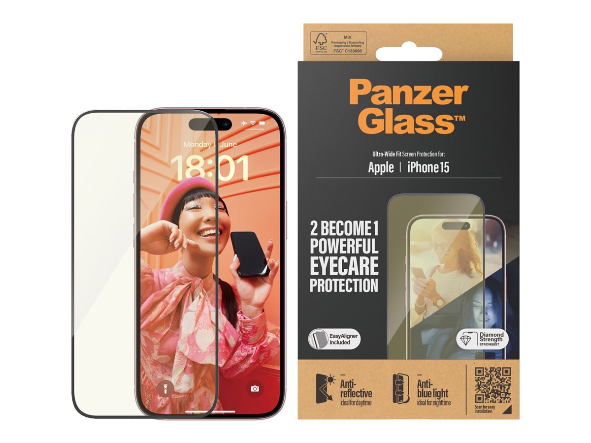 | Produktbeskrivelse | PanzerGlass - skærmbeskytter for mobiltelefon - øjepleje, ultrabred pasform med EasyAligner |