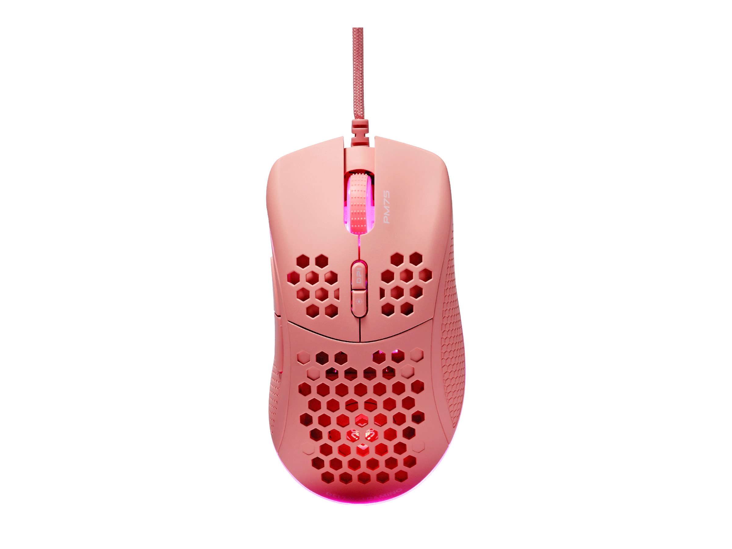 | Produktbeskrivelse | DELTACO GAMING PM75 - mus - ultralet, gaming, RGB - USB - pink |