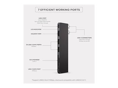 Denne dockingstation handler ikke kun om at udvide dine porte; den handler også om effektivitet og pladsbesparelse. Det slanke design af Pro Hub Slim gør den til en perfekt ledsager for professionelle på farten eller alle, der ønsker at rydde op på deres arbejdsplads, samtidig med at de har adgang til vigtige tilslutningsmuligheder.