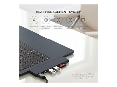 Pro Hub Slim er designet til at forbedre din seeroplevelse og understøtter skærme i høj opløsning op til 6K via USB4 og 4K-opløsning via HDMI. Med en opdateringshastighed på 60 Hz og HDR-understøttelse leverer den skarpe, levende billeder til en fordybende seeroplevelse.