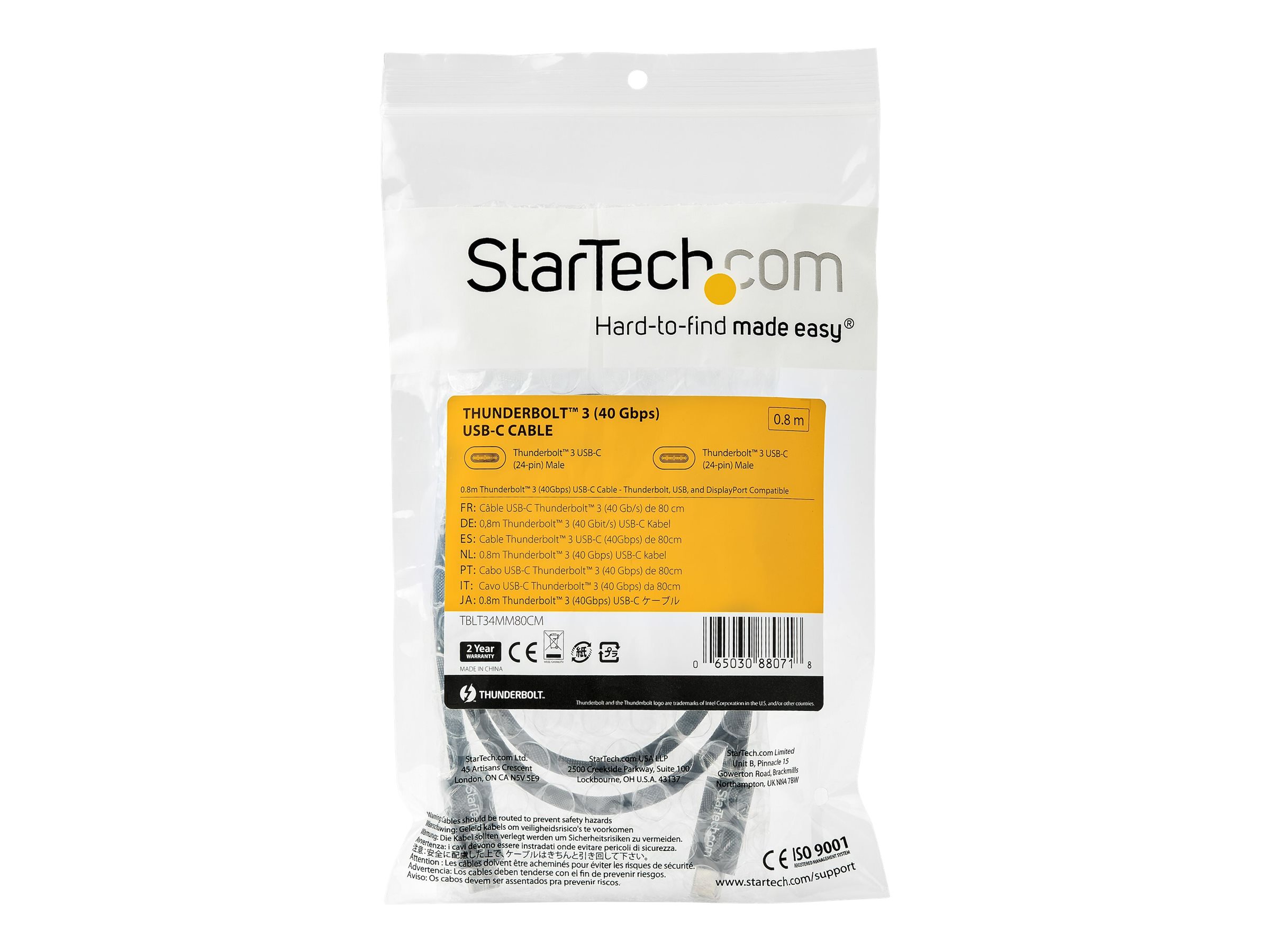 TBLT34MM80CM is backed by a StarTech.com 2-year warranty and free lifetime technical support.