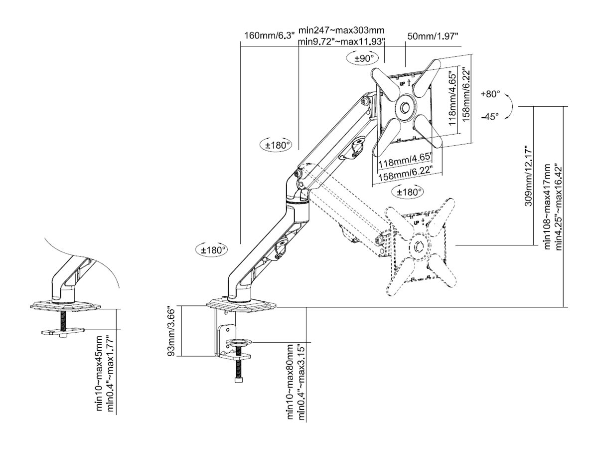 | Mounting Components | Articulating arm, C-clamp, VESA adapter, VESA cover |