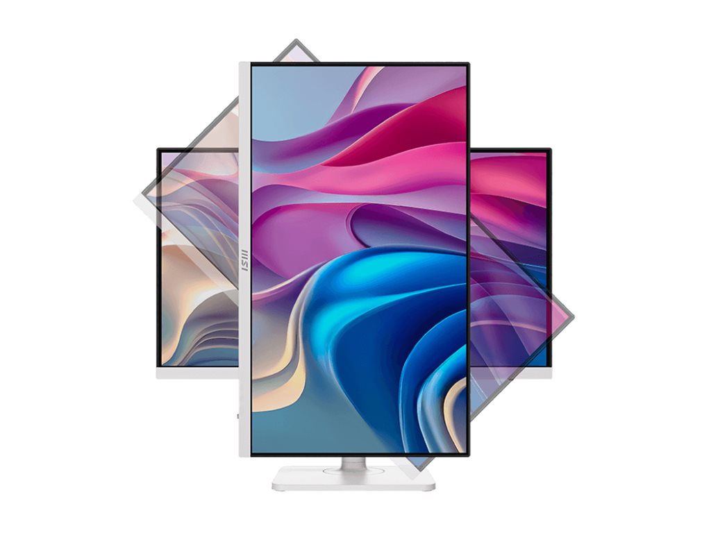 Egenskaber Billedopdeling, integreret kabeladministration, Bredt farvespektrum, Billede-i-billede, Delta E<2 kalibrering, 3-sidet kantløs, Anti-Flicker, MSI Eye Care, Less Blue Light-teknologi, MSI EyesErgo-teknologi, Eye-Q Check-teknologi, KVM
