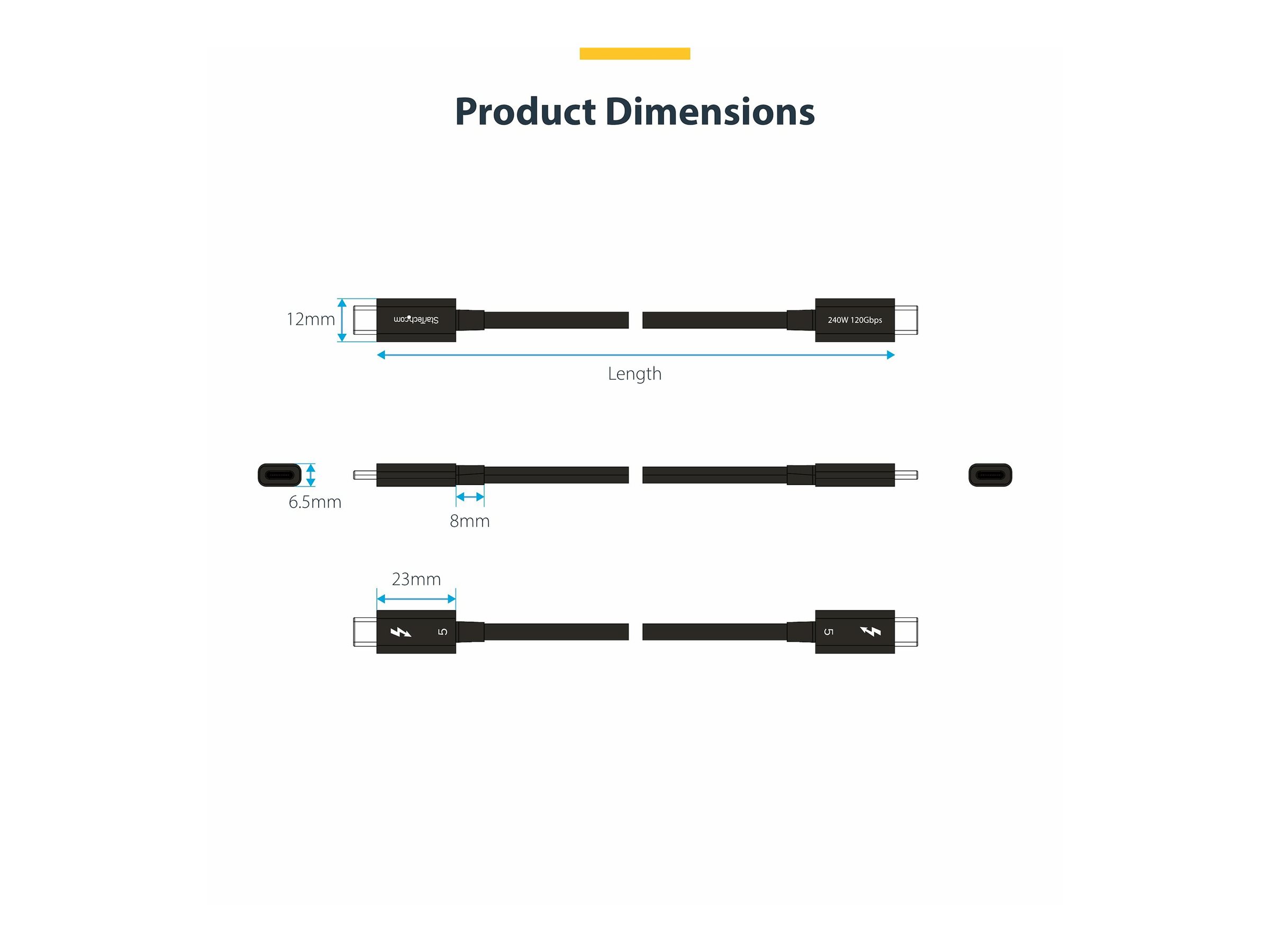 | Produktbeskrivelse | StarTech.com 2.6ft (80cm) Thunderbolt 5 Cable, 80Gbps/120Gbps, Certified - Thunderbolt kabel - Thunderbolt 5 til Thunderbolt 5 - 80 cm |