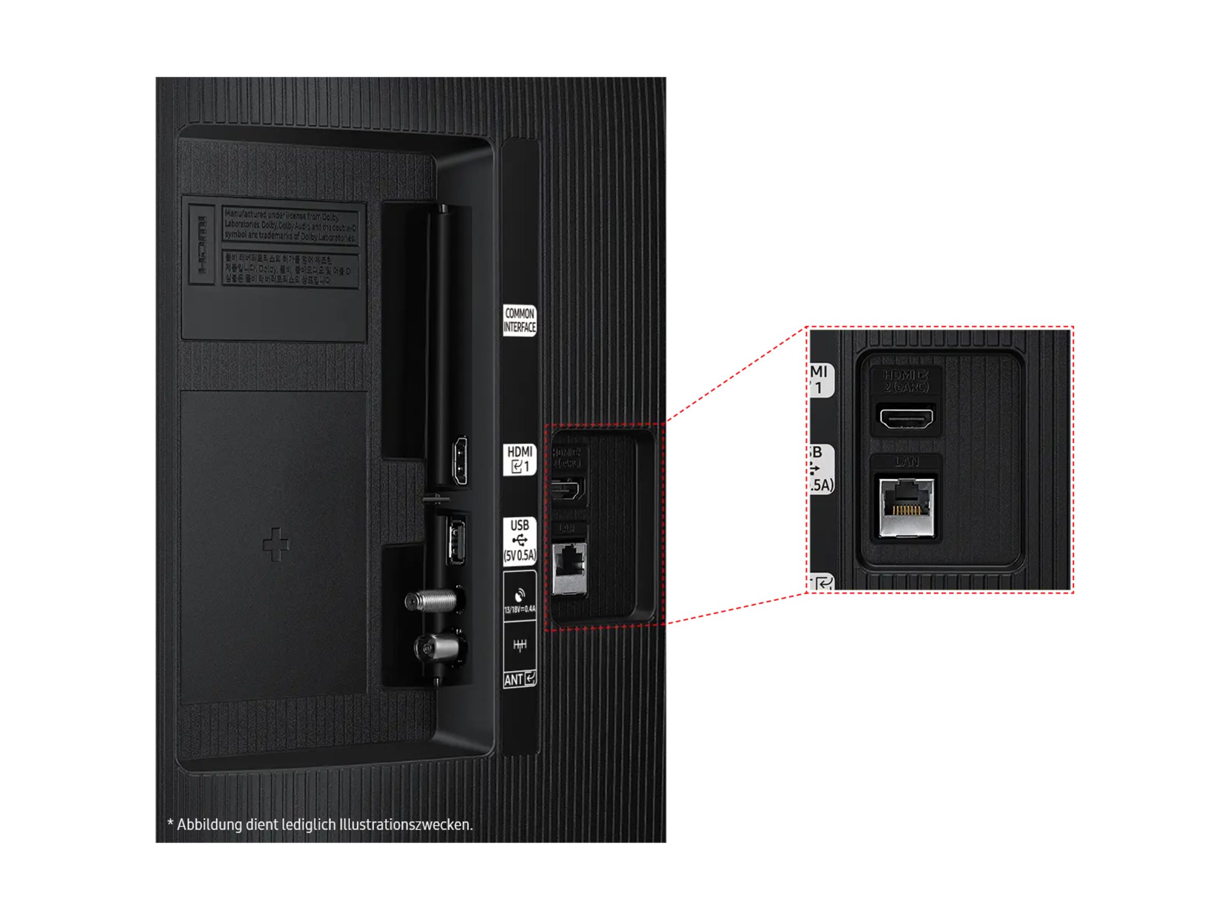 Denne model har to HDMI-porte og en USB-port, hvilket gør det nemt at tilslutte spilkonsoller, streaming-enheder og andet tilbehør. LAN- og Wi-Fi-tilslutning giver problemfri internetadgang til streaming og browsing.