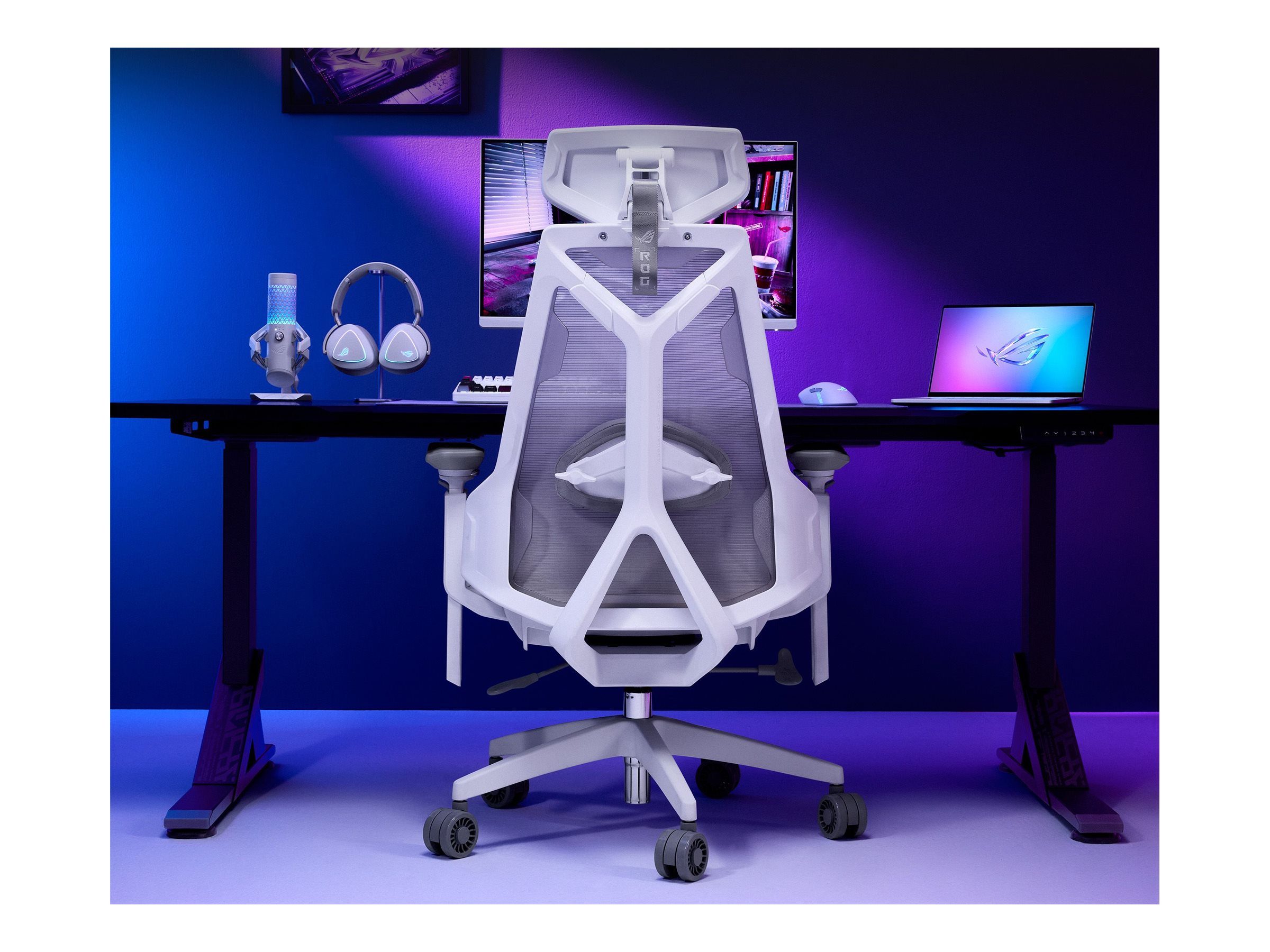 | Produktbeskrivelse | ASUS ROG Destrier Core SL400C - spillestol - polyamid nylon, luftig mesh - månelyshvid |