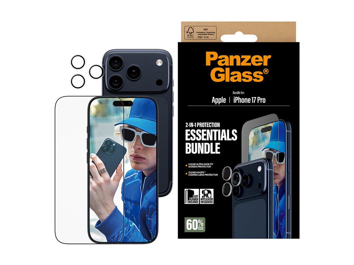 | Produktbeskrivelse | PanzerGlass - 2-i-1 Essentials Bundle - skærm / linse beskyttelsessæt for mobiltelefon |
