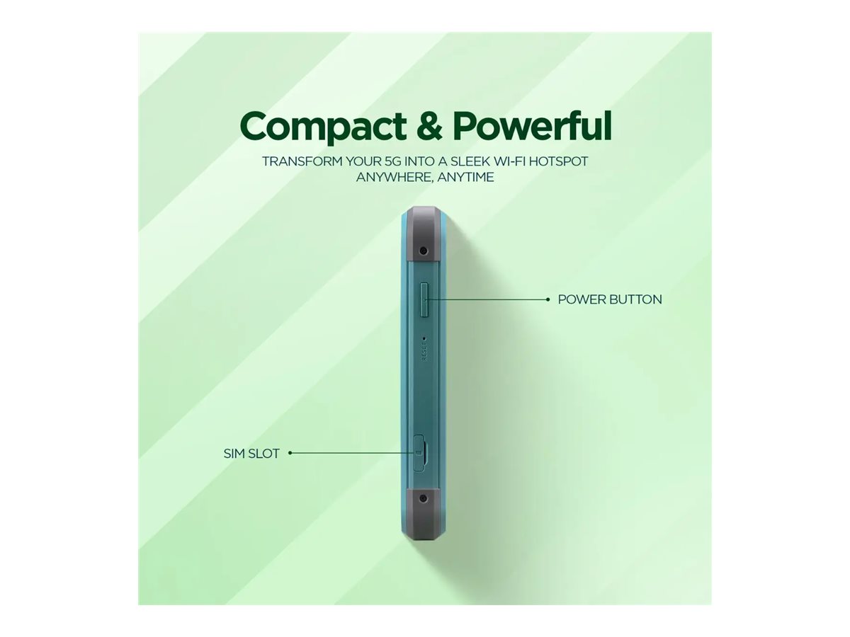 Lav din 5G-forbindelse om til et kraftfuldt WiFi 6-hotspot. Med 2 gange 2 Dual Band 2,4 GHz og 5 GHz-bånd kan du nyde hurtigere og mere pålidelig deling med op til 16 enheder samtidigt, uanset om du streamer, spiller eller arbejder.