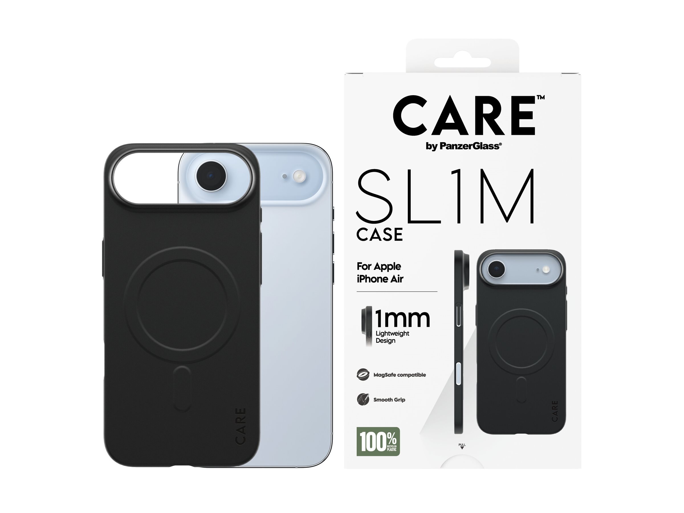 Slank og effektiv beskyttelse, der ikke fylder!Vi præsenterer vores tyndeste cover nogensinde: SL1M. Det nye superslanke CARE by PanzerGlass cover til iPhone-telefoner er – hold nu fast – kun 1 millimeter tykt! Og alligevel er det Mag-Safe-kompatibelt og udstyret med forbedret kamerabeskyttelse. Coveret er fremstillet i 100 % genanvendt plast og behandlet med vores unikke intelligente belægning med nanoteknologi, der er modstandsdygtig over for sved og makeup. Vi yder også 1 års garanti mod gulning. Sig farvel til klodsede covers, der gulner med tiden, og goddag til slank og effektiv beskyttelse, som beskytter din livline til omverdenen mod fald, stød og ridser – uden at skjule telefonens smukke og slanke design bag et stort cover. DARE TO CARE.CARE er et internationalt livsstils- og techbrand, kendt for sit legende og ansvarlige design. Skabt af de bedste materialer og inspireret af de nyeste trends inden for mode, kunst og musik. Med CARE tager vi ansvar for mennesker og den verden, vi lever i. Vi understøtter bæredygtighed og dit personligt udtryk – og forlænger dine enheders holdbarhed. Opgrader din mobil til en stilsikker og godt beskyttet accessory. Vis verden, at du tager ansvar. Dare to care.