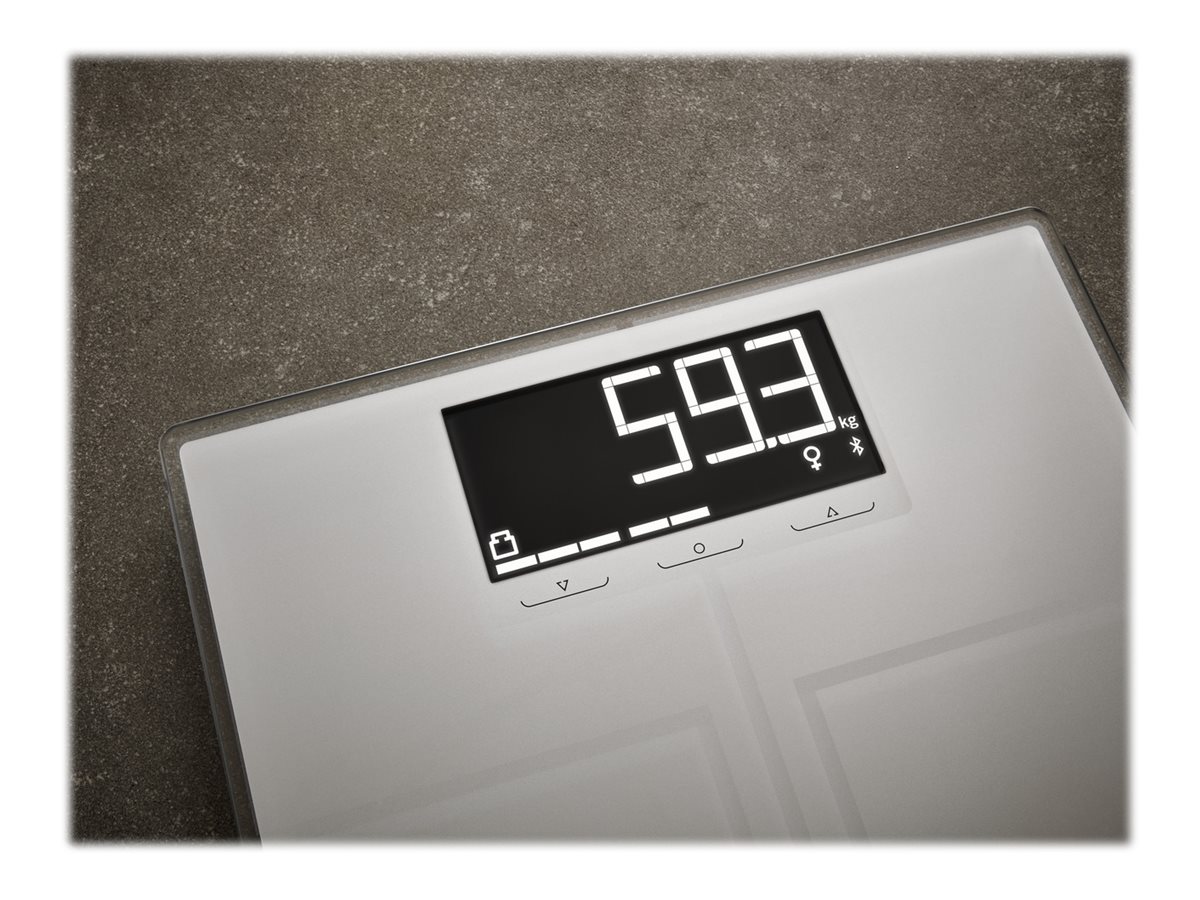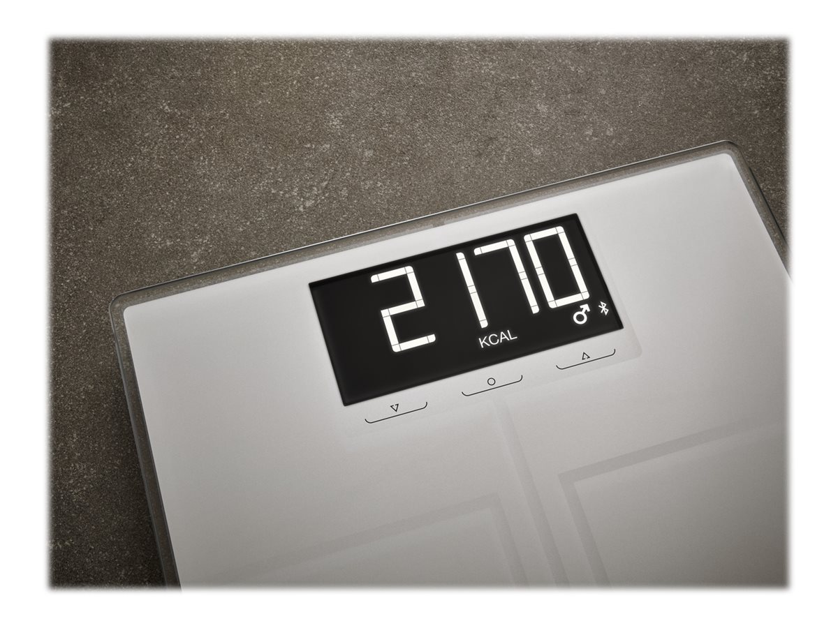 | Målefunktioner | Kropsvandsprocentdel, kropsfedt-procentdel, kropsmasseindeks (BMI), muskelmasse, daglig anbefalet kalorieindtagelse |