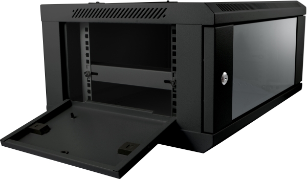 Vægmonteret - 4U - 50kg - 2x sidepanel uden lås - 1x Glasdør med lås