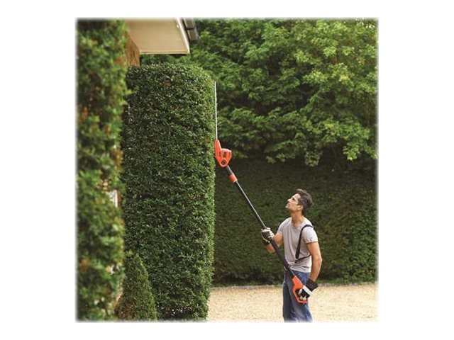 Kan udvides op til 2,3m i brugbar længde, som giver ca. 3,8m rækkevidde - Ideel til klipning af ekstra høje hække. 180 graders drejelig hoved der kan stilles i 5 forskellige positioner, for større alsidighed og tilgængelighed ved klipning. 550W 51cm hækkeklipper på skaft til hurtig og effektiv klipning af høje hække. Ergonomisk, balanceret design og blødt greb sørger for ekstra komfort. Diamant formalet dobbeltklinge sørger for renere skæring og reduceret vibration for øget komfort ved brug.