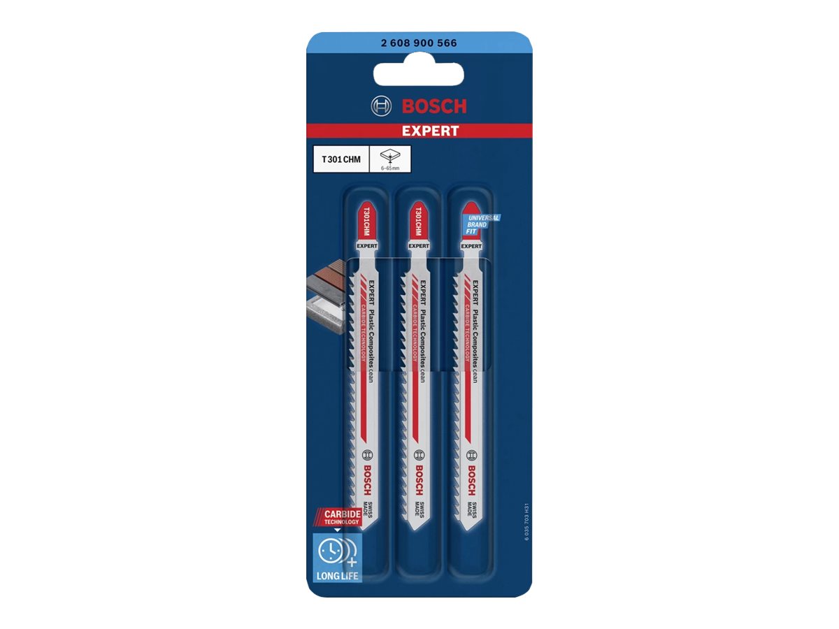 | Produktbeskrivelse | Bosch Expert Plastic Composites Clean T 301 CHM - stiksavsklinge - for plastikprofiler, plastikrør, træ-plastikkomposit, plastikkomposit, solid overflade-kompositter - 3 stykker |