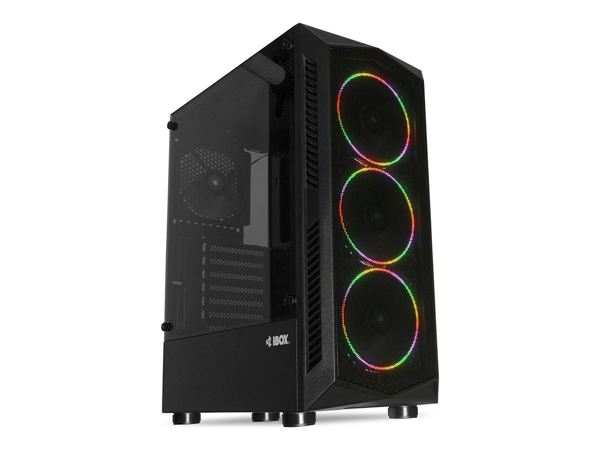 IBOX LUPUS 27 er et alsidigt tower-kabinet designet til gamere og pc-byggere, der søger funktionalitet og stil. Med et sidepanel af hærdet glas giver dette kabinet et klart udsyn til de indvendige komponenter og viser RGB-blæsere og belysningsmuligheder. Det maskede frontpanel sikrer optimal luftgennemstrømning, mens det aftagelige sidepanel giver nem adgang til opbygning og vedligeholdelse. Et kabelstyringssystem holder styr på kablerne, giver æstetisk appel og forbedrer køleeffektiviteten med flere monteringssteder til blæsere.
