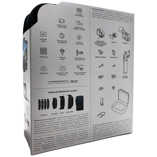| Udstyr inkluderet | Bæretaske, batteri med udvided kapacitet, kurvet klæbende montering, objektivdæksel, LED-lys, skydegrip/minitrefod/selfiepind, media mod, magnetic mount |