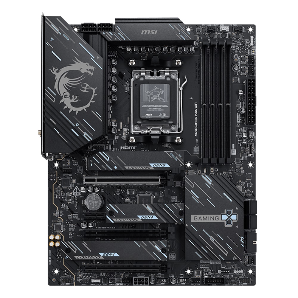 | Produktbeskrivelse | MSI X870E GAMING PLUS WIFI - bundkort - ATX - Socket AM5 - AMD X870E |