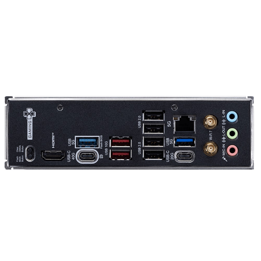 | USB / FireWire porte | 1 x USB4 + 1 x USB-C 3.2 Gen 2x2 + 2 x USB 3.2 Gen 2 + 2 x USB 3.2 Gen 1 + 4 x USB 2.0 + (1 x USB-C 3.2 Gen 2 + 4 x USB 3.2 Gen 1 + 6 x USB 2.0 via samlekasser) |