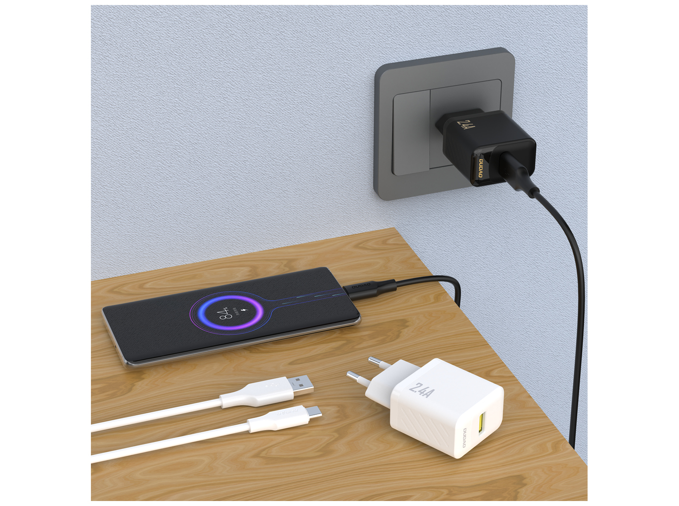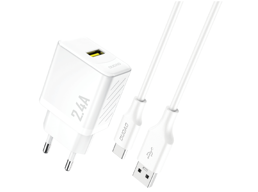 Dudao A23TEU Adapter 12Watt 1xUSB-A (1m USB-A to USB-C cable included) Hvid