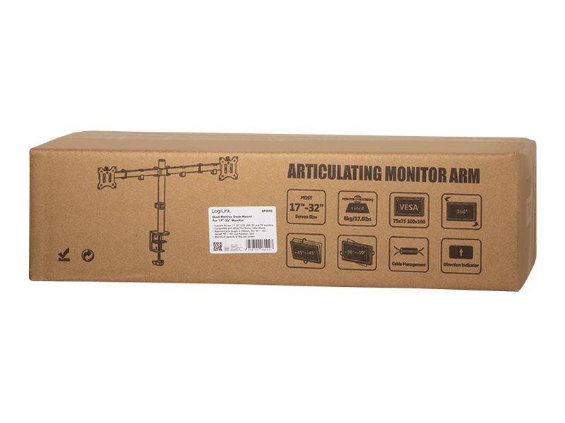 | Produktbeskrivelse | LogiLink monteringssæt - justerbar arm - for 2 LCD displays - sort |