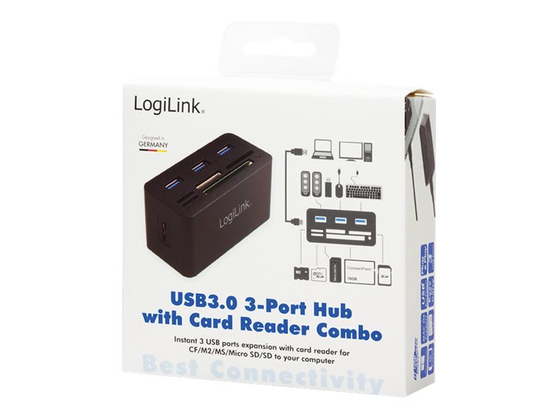 | Produktbeskrivelse | LogiLink USB 3.0 Hub with All-in-One Card Reader - hub - 3 porte |