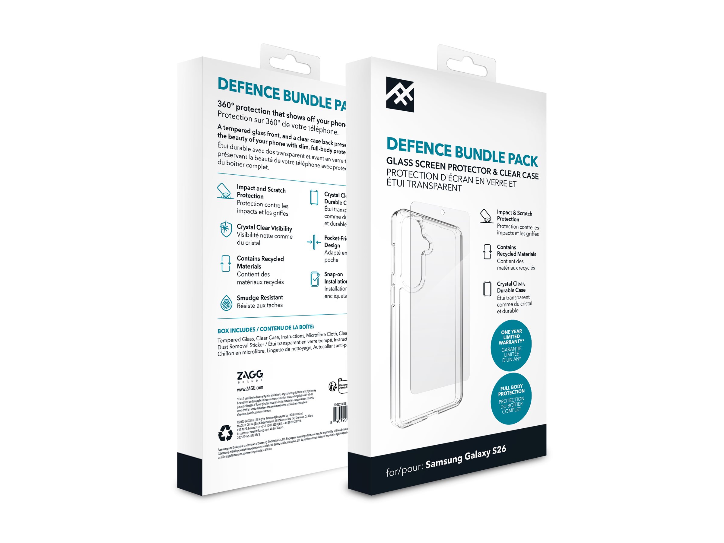 iFrogz Defence - 2-i-1 Bundle - bagsidecover til mobiltelefon - klar - med Glass Screen Protector - for Samsung Galaxy S26