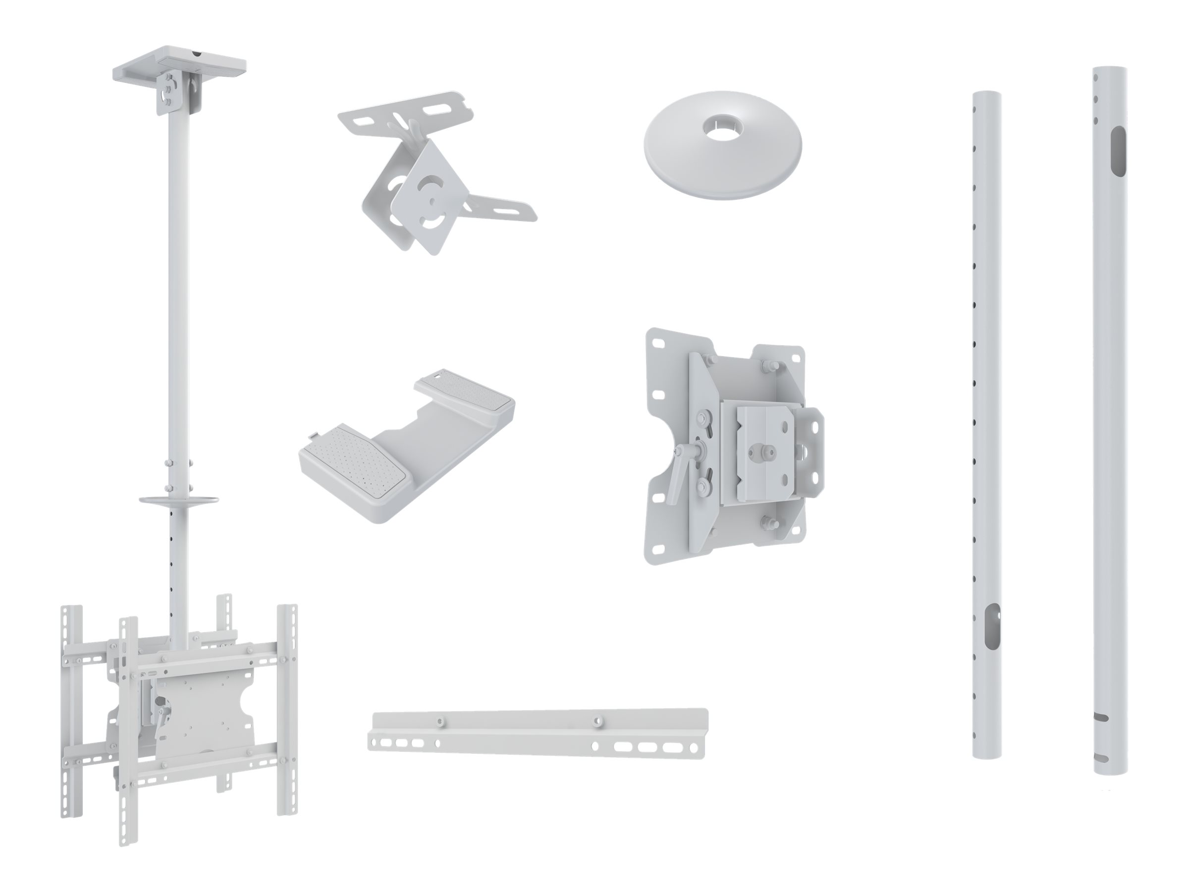 | Pakkeindhold | Loftsplade, hardwaresæt, 2 x eksterne rør, 2 x inderrør, loftspladedække, indre loft pladedække, 8 x forlængerbarrer, 2 VESA-monteringsplader |