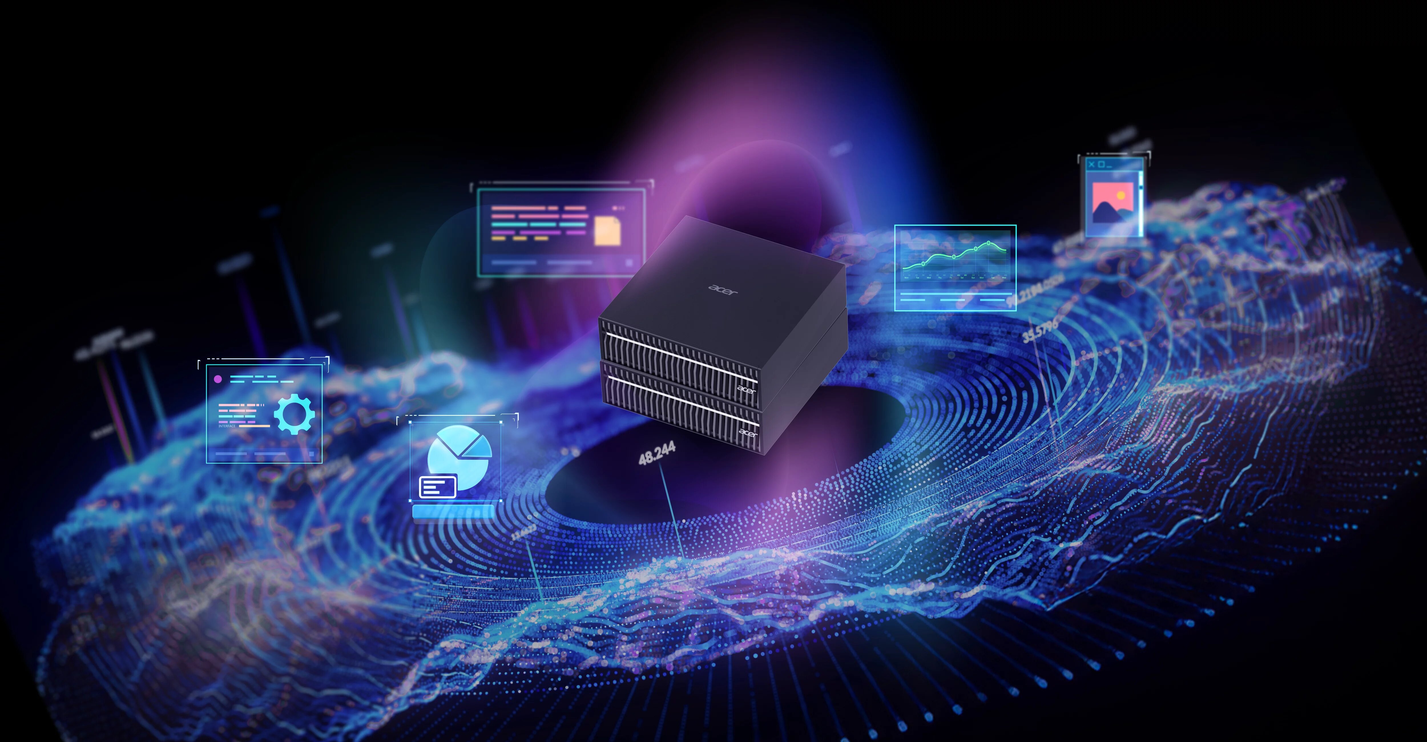 Acer Veriton GN100 AI Mini-arbejdsstationen er robust og kompakt og leverer ydeevne på AI-serverniveau i mini-pc-format uden at gå på kompromis med datastørrelse, beskyttelse af proprietær software eller hastigheden af skalerbarhed.