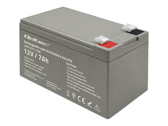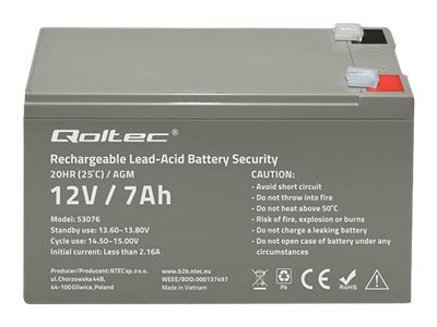 | Produktbeskrivelse | Qoltec - UPS-batteri - AGM-batteri, maks. 105 A, sikkerhed - Blysyre - 7 Ah |