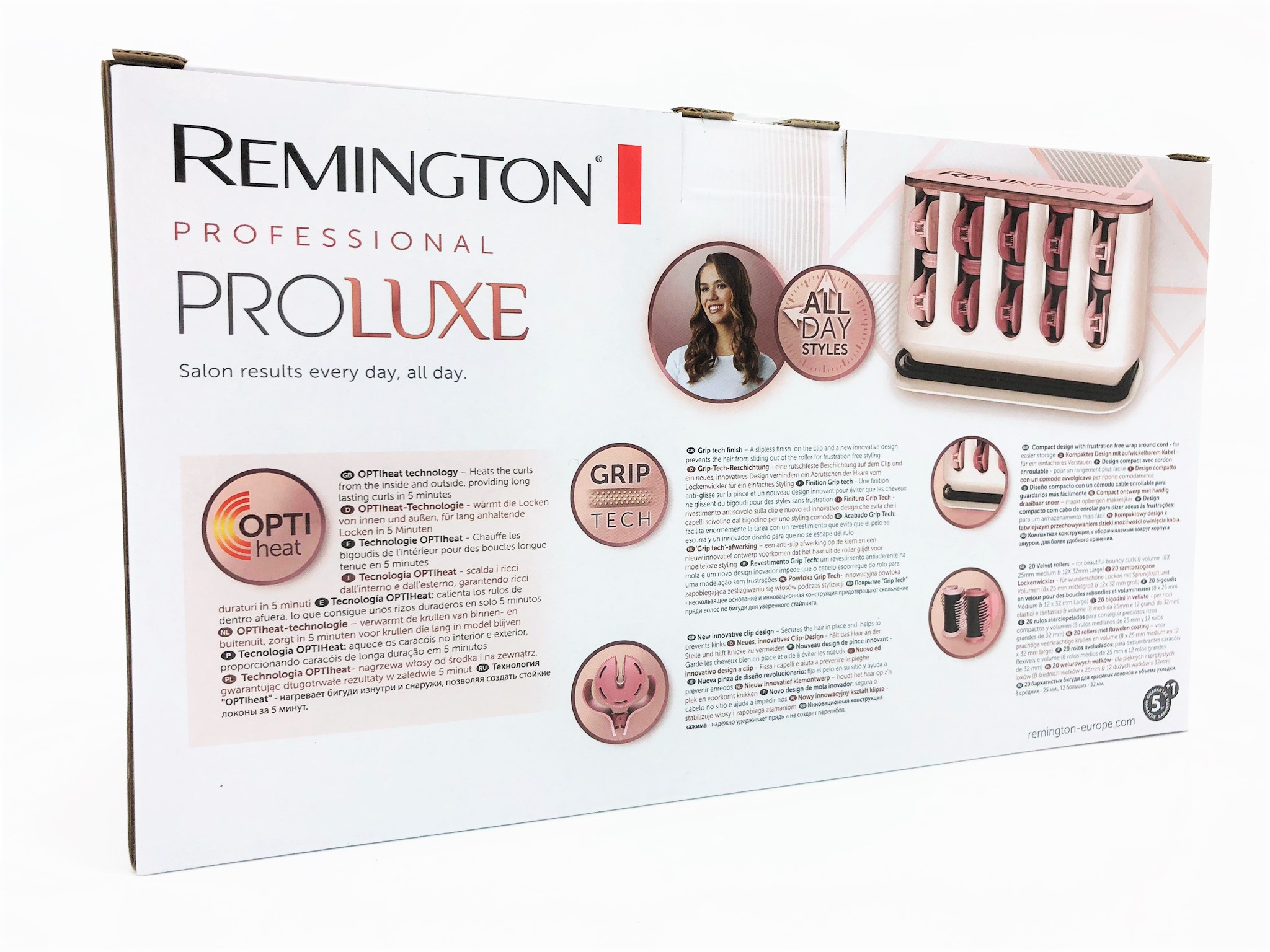 Remington H9100. Produktfarve: Flerfarvet, Samlet antal curlere: 20 stk, Opvarmningstid: 90 sek./side. Pakkebredde: 325 mm, Pakkedybde: 134 mm, Pakkehøjde: 187 mm