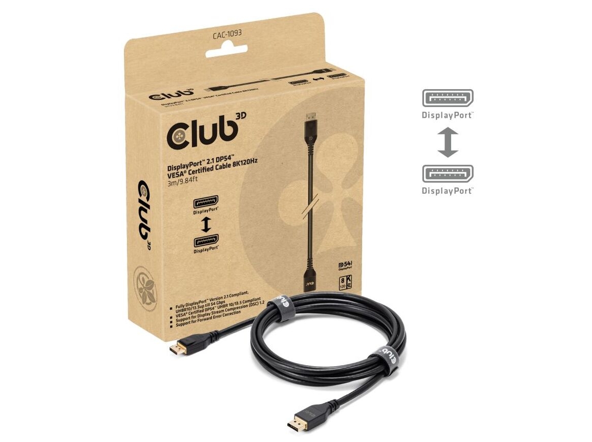 Club 3D - DisplayPort kabel - DisplayPort (han) til DisplayPort (han) - DisplayPort 2.1, DP54 - 3 m - sort