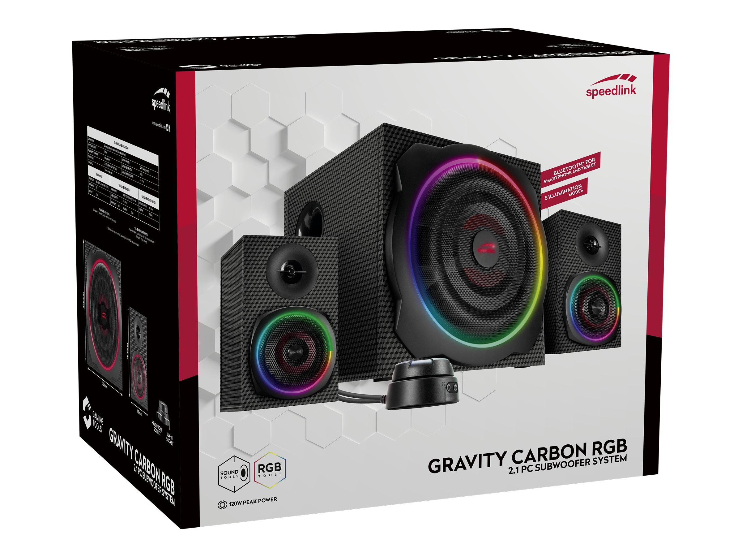 | Produktbeskrivelse | SPEEDLINK GRAVITY CARBON RGB - højttalersystem - til PC - trådløs |