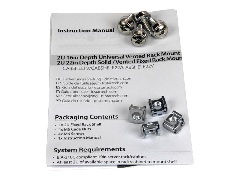 | Produktbeskrivelse | Startech 2U Fixed Server Rack Mount Shelf, 22in Deep Steel Universal Cantilever Tray for 19" AV/Data/Network Equipment Rack with Cage Nuts & Screws, 50lbs Weight Capacity, 22" Deep - 2U Network Rack Shelf (CABSHELF22) - rackhylde - 2U |