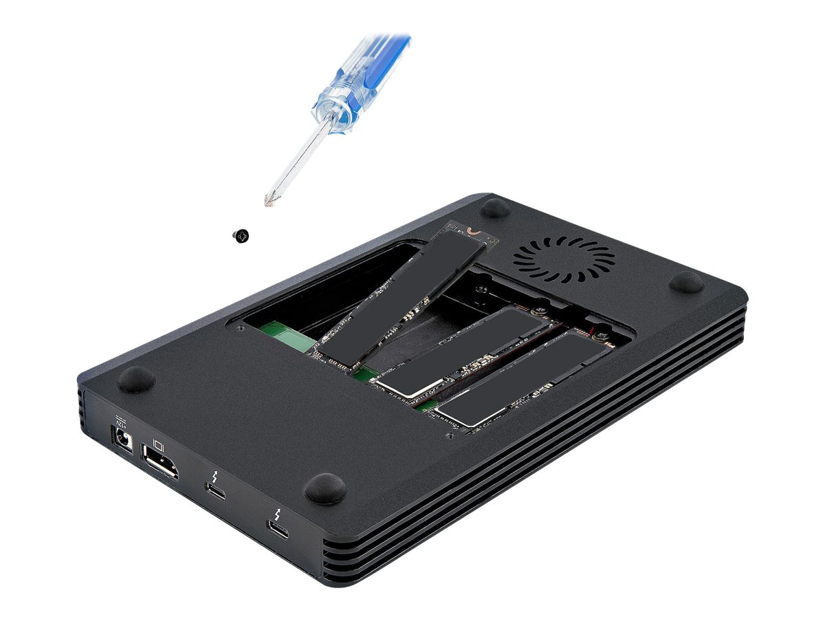 | Produktbeskrivelse | Startech 4 Bay Thunderbolt 3 NVMe Enclosure, For M.2 NVMe Solid State Drives, 1x DisplayPort Video & 2x TB3 Downstream Ports, Up to 40Gbps, 72W Power Supply - 4 Bay M.2 SSD External Hard Drive Enclosure (M2E4BTB3) - lagringspakning - M.2 NVMe Card / PCIe (NVMe) - Thunderbolt 3 |