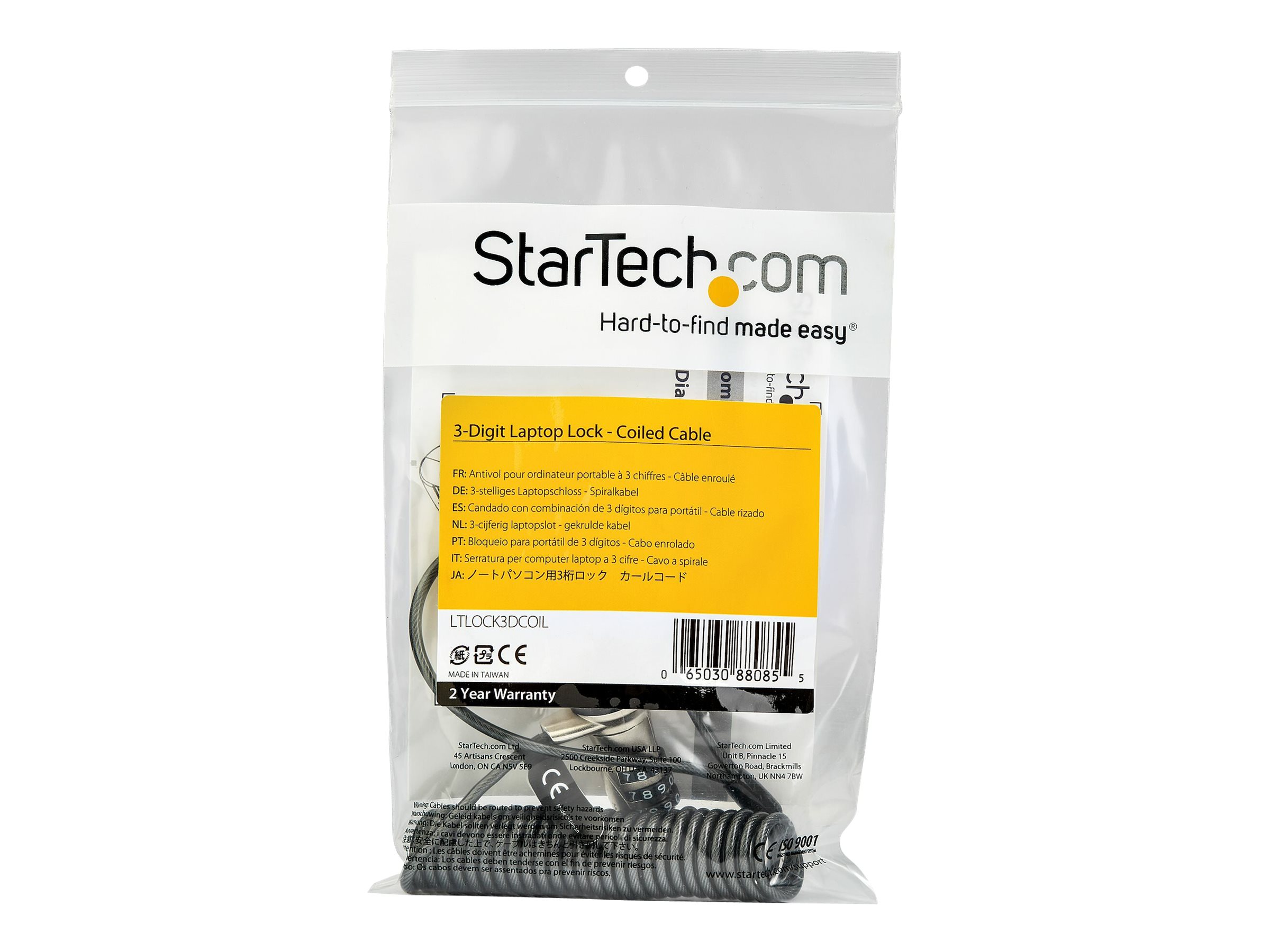 | Produktbeskrivelse | Startech 6ft (1.8m) Self-Coiling Laptop Cable Lock, Portable 3-Digit Combination Security Cable Lock for K-Slot Laptop/Computer/Desktop/Device, Coiled Anti-Theft Steel Cable Combo Lock - 6 ft Coiled Cable Lock (LTLOCK3DCOIL) - sikkerhedskabelslås |