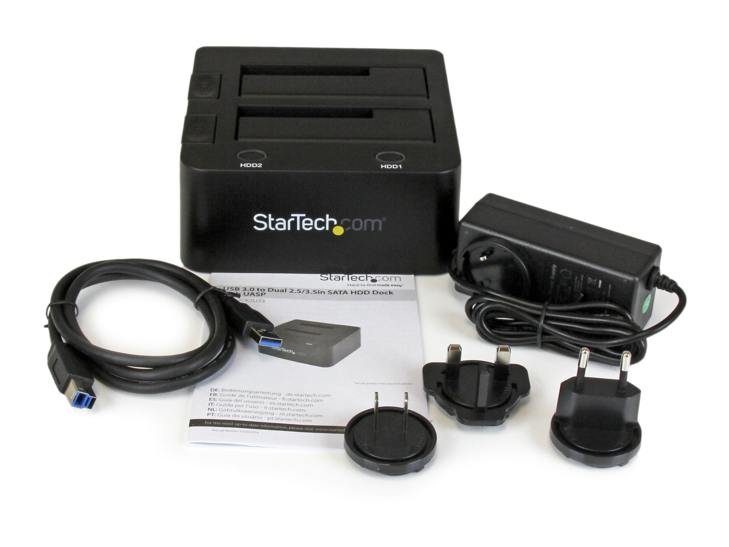 | Produktbeskrivelse | Startech Dual-Bay USB 3.0 to SATA Hard Drive Docking Station, USB Hard Drive Dock, External 2.53.5 SATA IIIIII, SSDHDD Docking Station, Hot-Swap Hard Drive Bay - Top-Loading - lagringskontrol - SATA 6Gb/s - USB 3.0 |