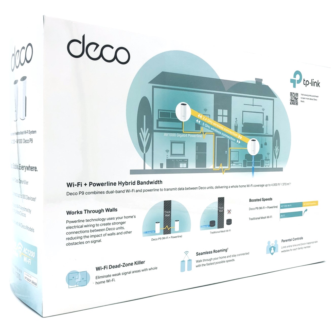 Egenskaber Auto-sensing per device, SPI, forældrekontrol, Tilgangspunkt, drift, firmware kan opgraderes, Mesh networking, WMM support, QoS, DHCP server, port fremsendelse, nulstillingsknap, dynamisk IP modus, DHCP klient, MU-MIMO teknologi, stråleformeteknologi, båndstyring, Backhaul Technology, gæsteadgang, sort liste, Voice Control, selvhelbredende netværk, Powerline-teknologi
