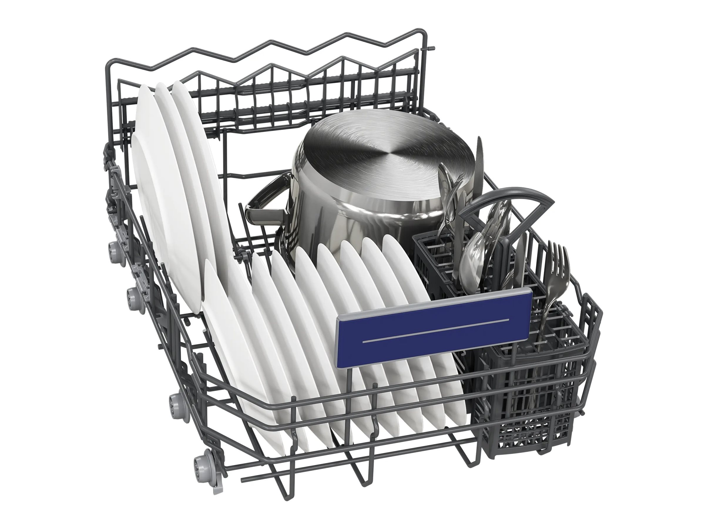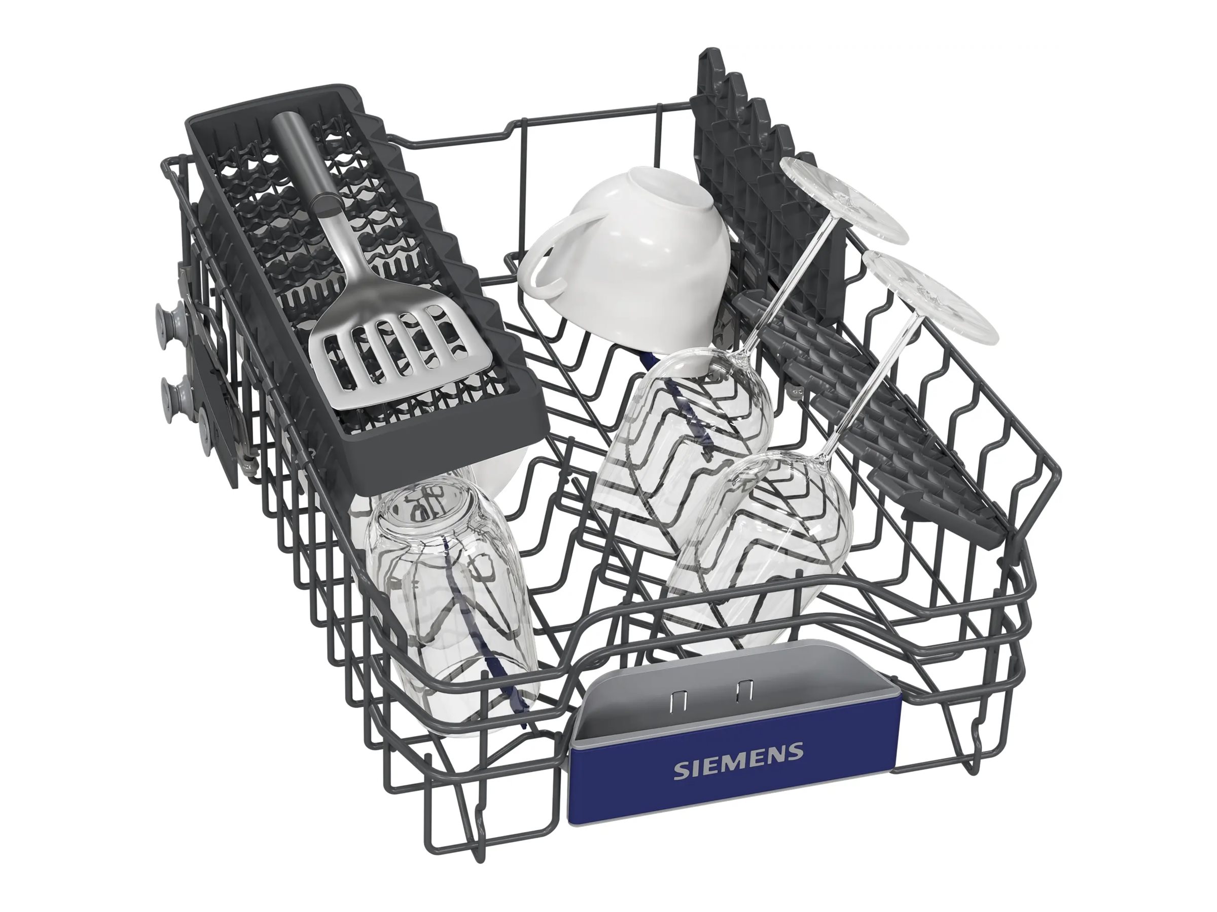 | Øvre stativ | Justerbar højde Rackmatic, 2 fuldbare pladeholdere, 2 kophylder, anti-skrid beskyttelsesstrips, DuoPower sprayarme, bestikbakke |