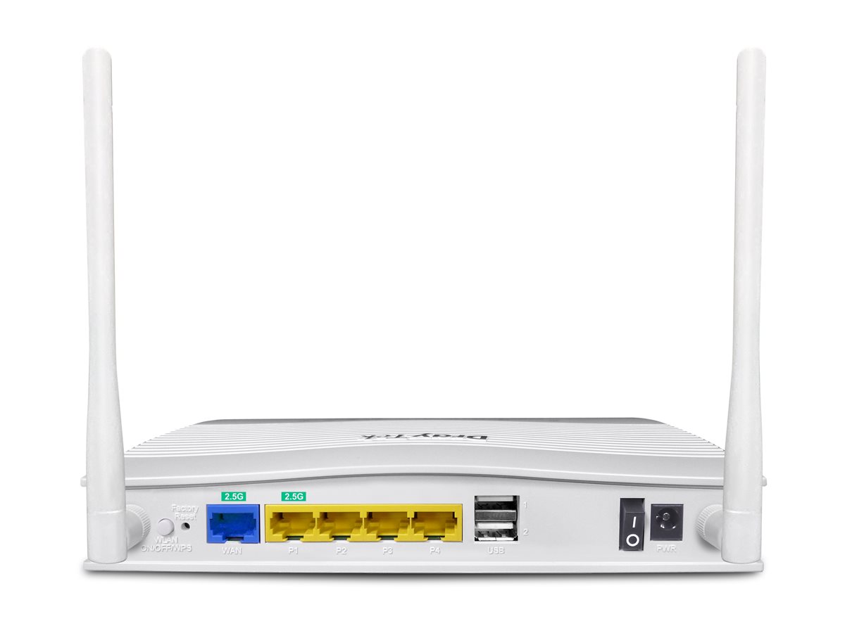 | Egenskaber | WDS/Mesh, PPP, VLAN Tagging, DHCP klient, PPPoE-klient, failover-support, ARP-detektion, pingdetektion, dynamisk DNS, DrayDDNS, LAN/WAN multiplex interface, 802.1x autentificering, portspejling, DNS server, Hotspot Access Point Capability, 2x2 MIMO 2.4GHz, MU-MIMO teknologi, OFDMA, AP-Assisted Roaming, WPS-knap, PIN-kodekontrol, WDS-gentagertilstand, klientisolation, skjult SSID, WLAN-planlægning, Airtime Fairness, båndstyring, WMM Admission Control, netrodtilstand, printserver, temperaturføler, fildeling, DNSSEC support, IGMP snooping, traffic-shaping, IP-baseret hastighedsbegrænsning, QoS, VoIP prioritering, MAC-adresse-filtrering, VPN support, Single-Armed VPN, IPSec NAT-T, reserve/genopret, dynamiske hardwarerutetabelallokeringer, PPPoE-gennemløb, WAN Budget |