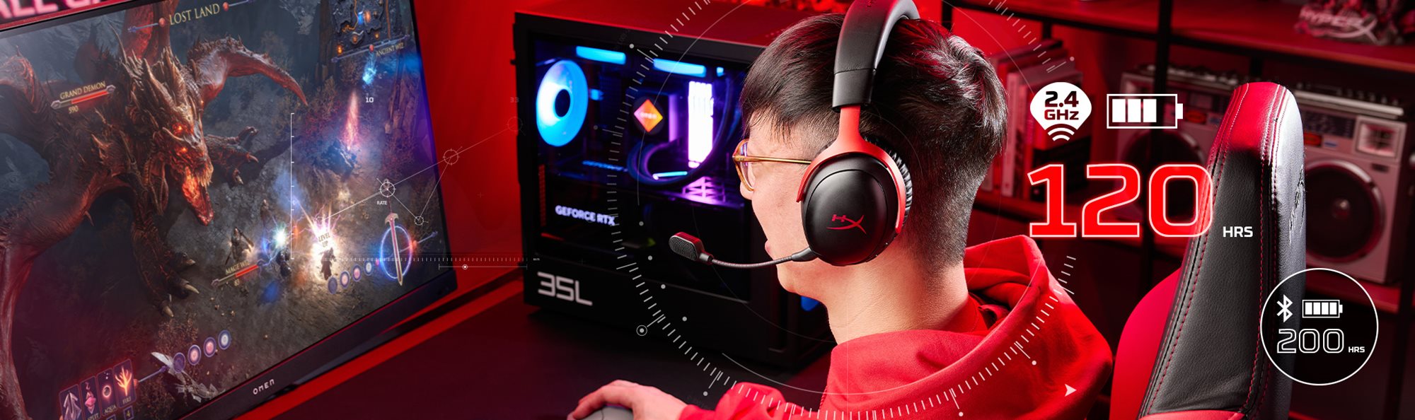 HyperX Cloud III-headsettet bruger trådløs tilslutningsteknologi, der eliminerer besværet med ledninger og giver gamere en mere afslappet og uhindret spiloplevelse.