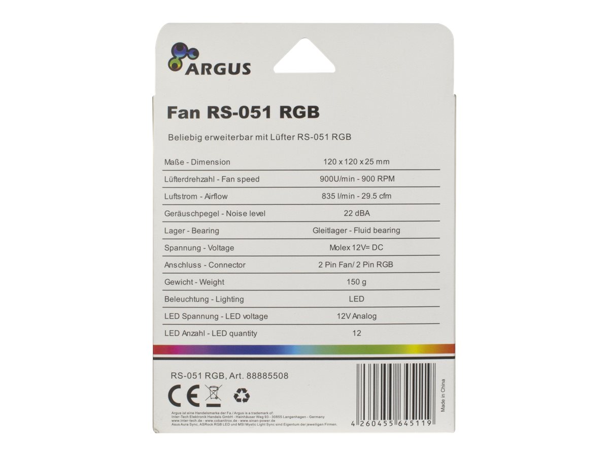 | Produktbeskrivelse | Argus RS-051 RGB - indsats med blæser |