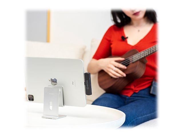 Dette trådløse mikrofonsystem kan nemt tilsluttes enheder med 3,5 mm mini-jackstik eller Apple Lightning, hvilket giver alsidighed til forskellige opsætninger.