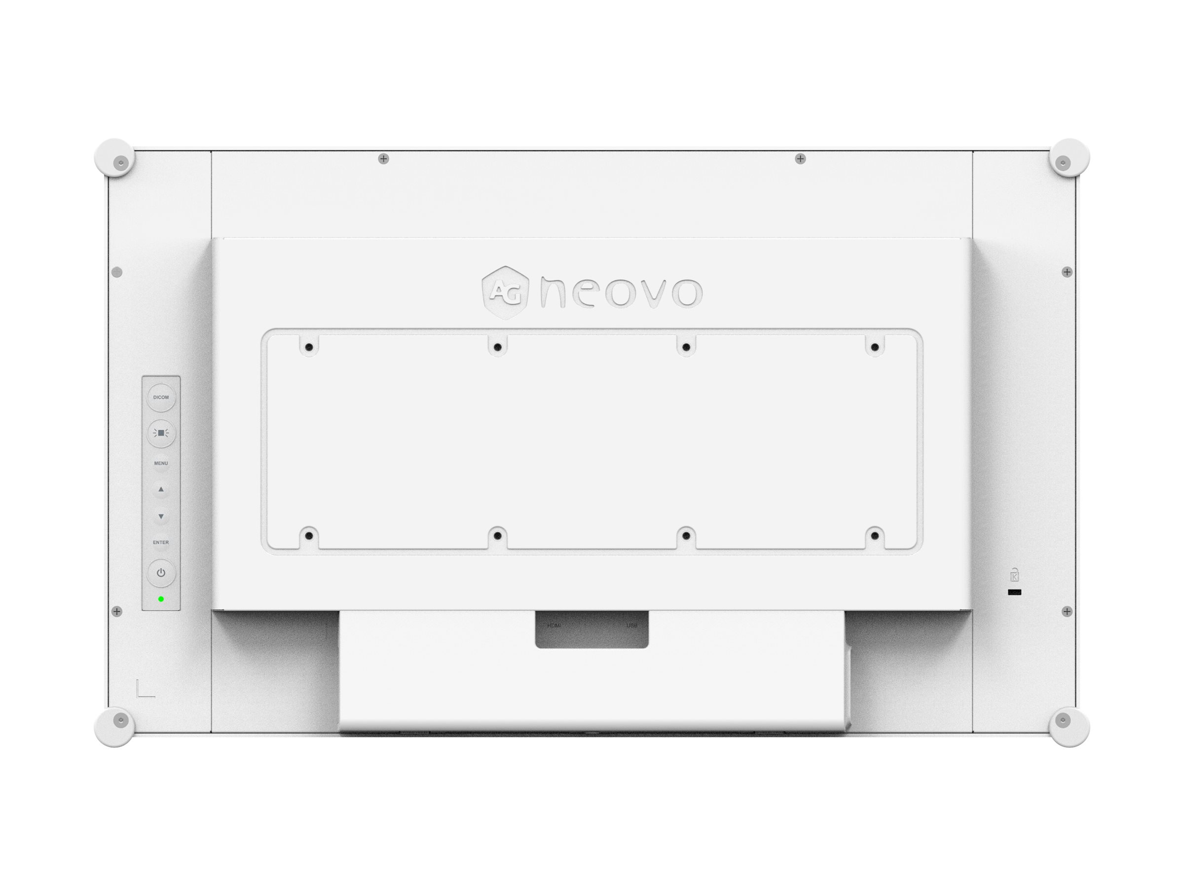 Med sin robuste konstruktion og NeoV Optical Glass er skærmen bygget til at modstå krævende brug, hvilket gør den ideel til både professionelle og medicinske miljøer.